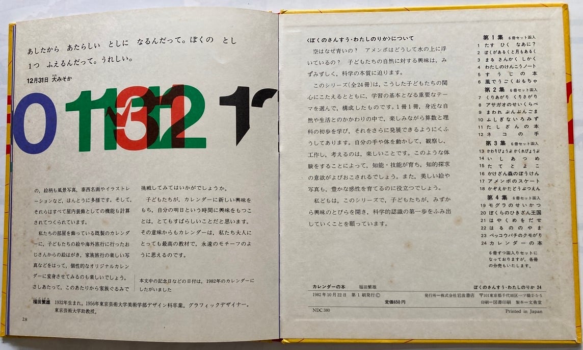 数字とページごとに行事の内容をならべ、その行事にちなんだ数字を絡めるというグラフィック。 1982年 初版 岩波書店