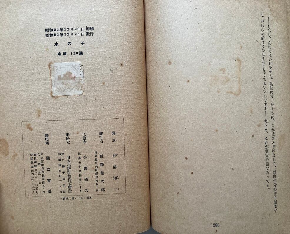 キングズレイ 水の子 阿部知二 訳 1947年 初版 国立書院