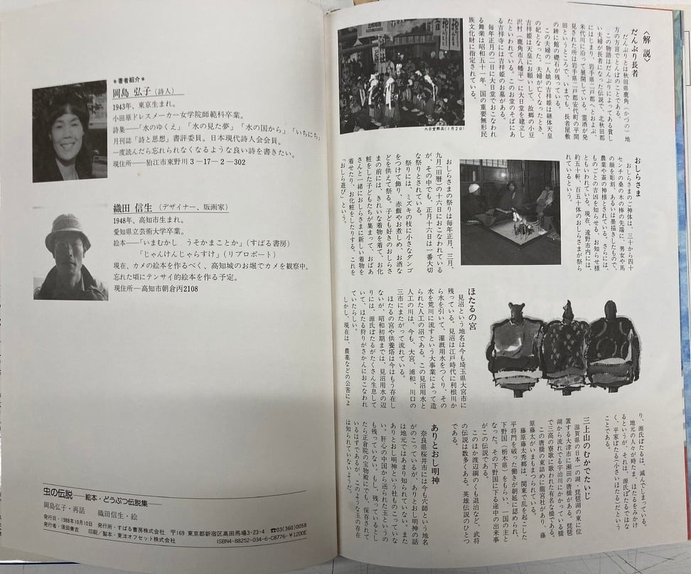 織田信生 虫の伝説 絵本・どうぶつ伝説集 岡島弘子・再話 1988年 初版 すばる書房