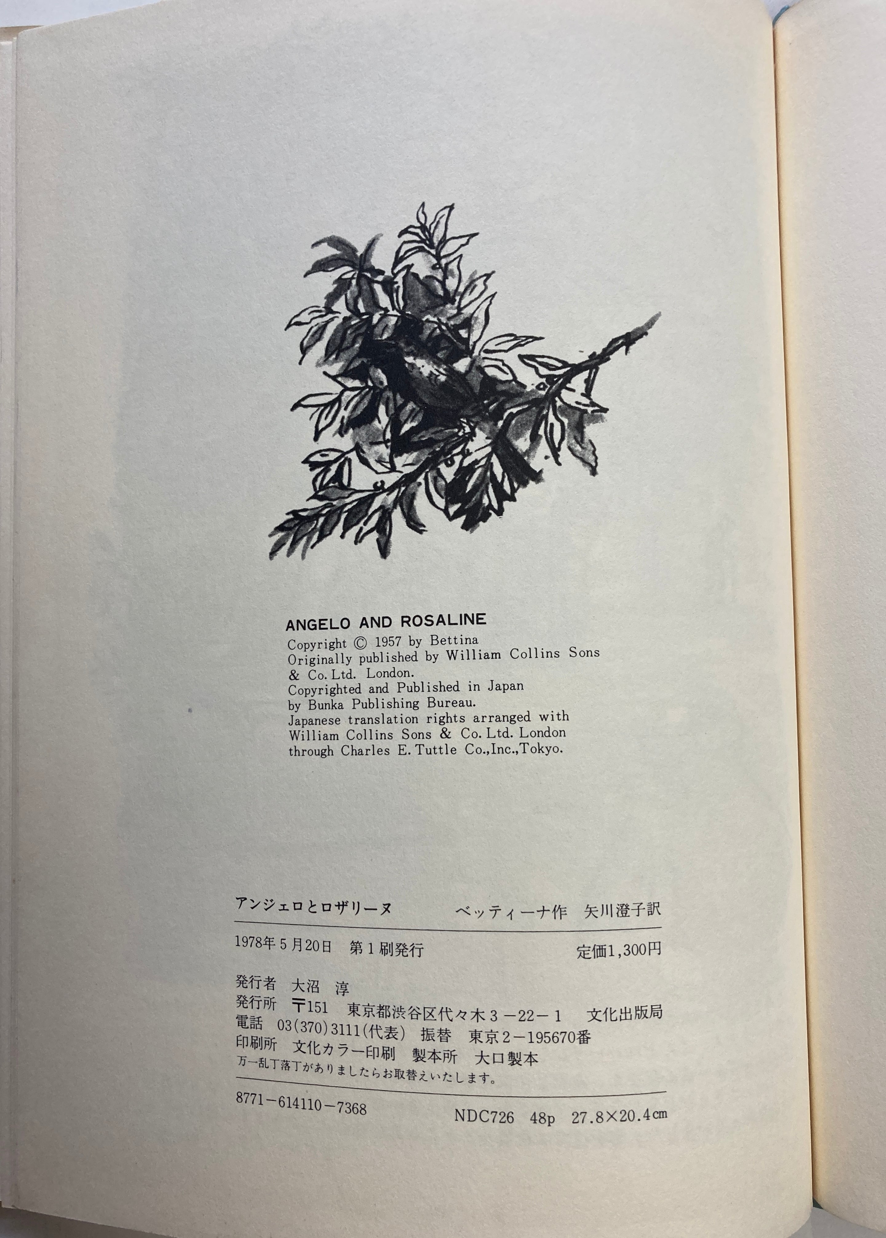 ベッティーナ アンジェロとロザリーヌ 矢川澄子 訳 1987年 初版 文化出版局
