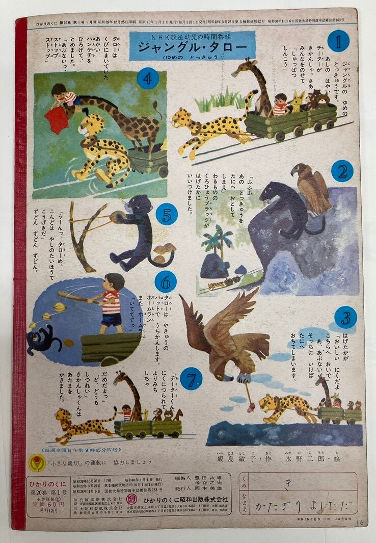 福田庄助 ぞうの ねんがじょう 飯島敏子 ひかりのくに20巻1号1月 1965年 ひかりのくに昭和出版