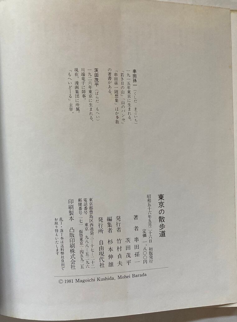 茨田茂平 東京の散歩道 串田孫一 1981年 初版 自由現代社