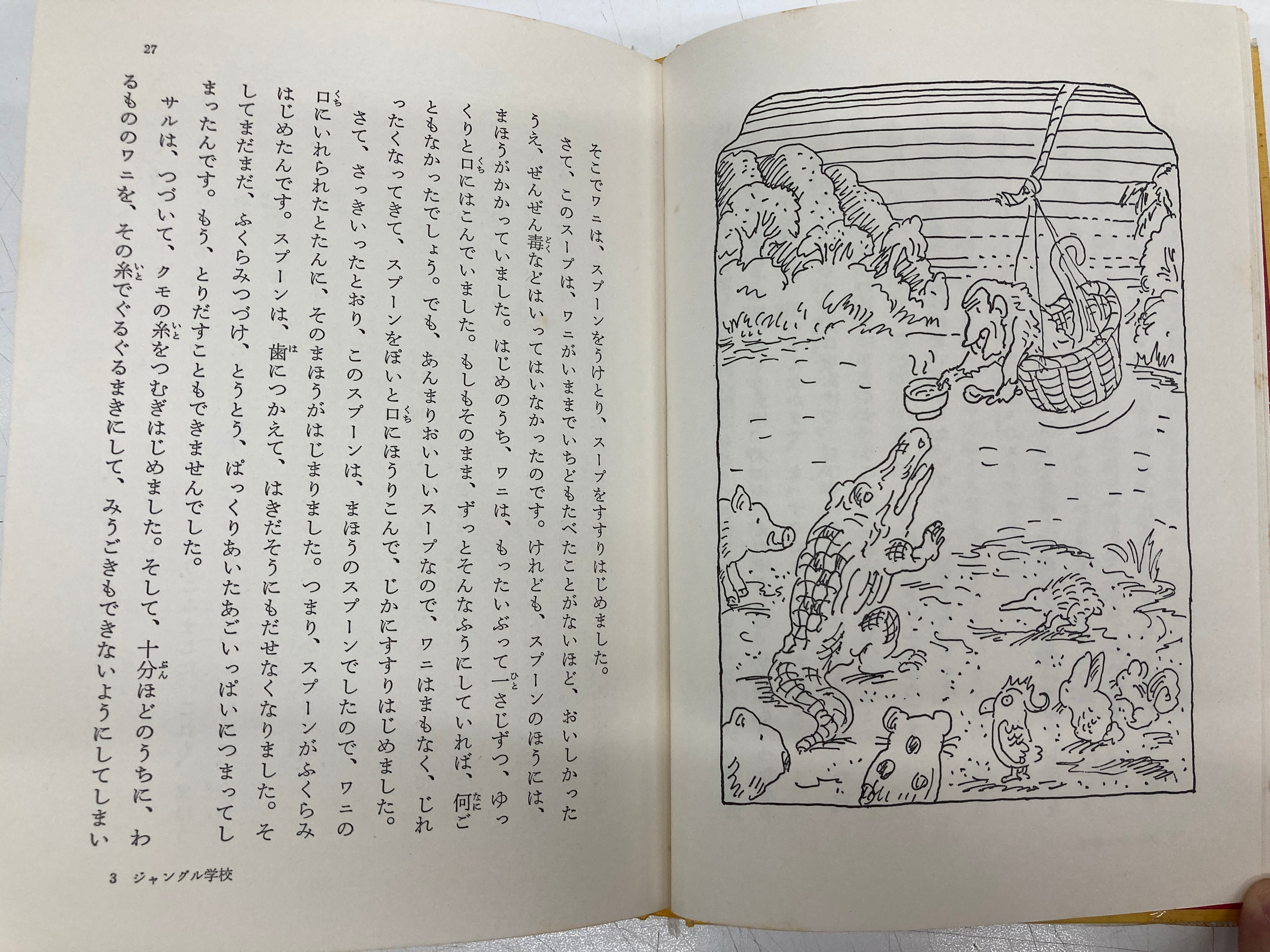 表紙の絵は、ワニにかわろうとしているモーターバイクにのっているサイモン。井上洋介にとっては、こんなの大得意ですね。 岩波ようねんぶんこ14 1979年 初版 ビニールカバー 岩波書店