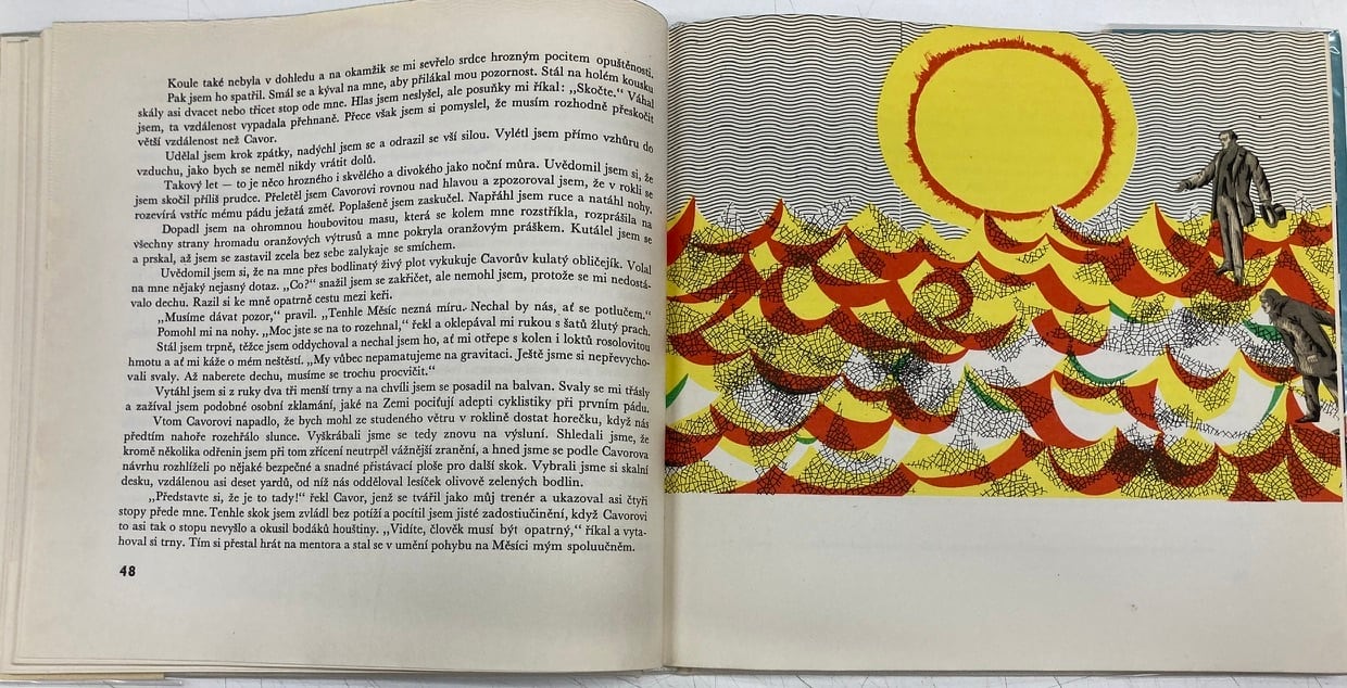 すごい挿絵!印刷もとても工夫している。特色刷りはそうだけど、コラージュのおもしろさ、ちゃんと遊んでいるなあ。お見事です。チェコ 1964年