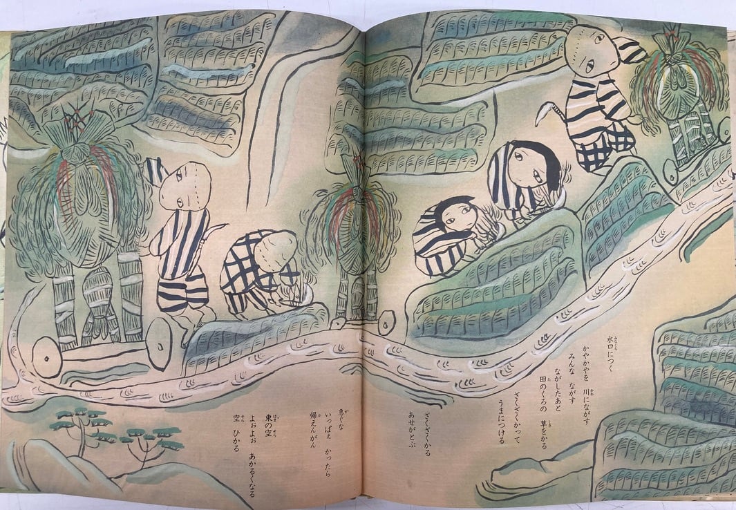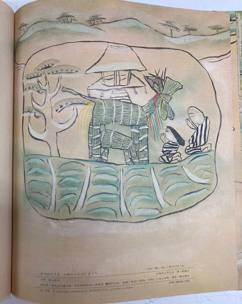 商業出版の絵本で、この絵本の大きさは異例のような気がする。縦31センチ横26.5センチは、相当大きい。挟み込みの作家の言葉がある冊子あります。ちなみにこの絵本は、日本のお祭り絵本シリーズの2。1は田島征彦の「祇園祭」 日本のお祭り絵本2 1978年 初版 童心社