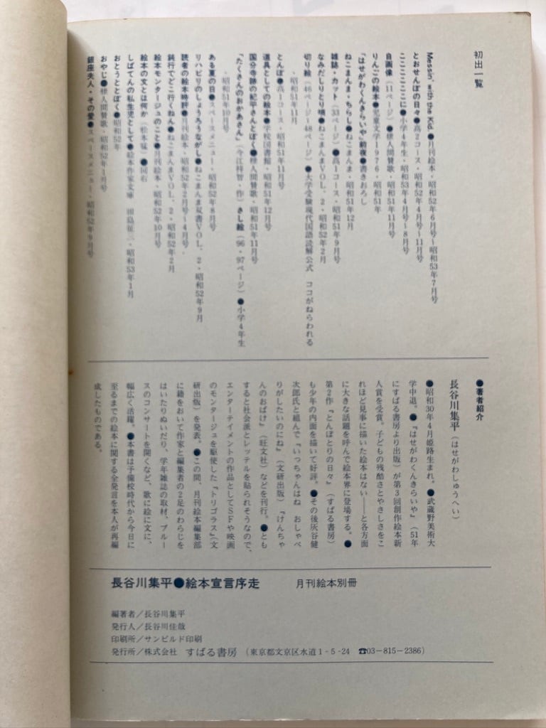 長谷川集平 絵本宣言序走 月刊絵本別冊 1978年 すばる書房