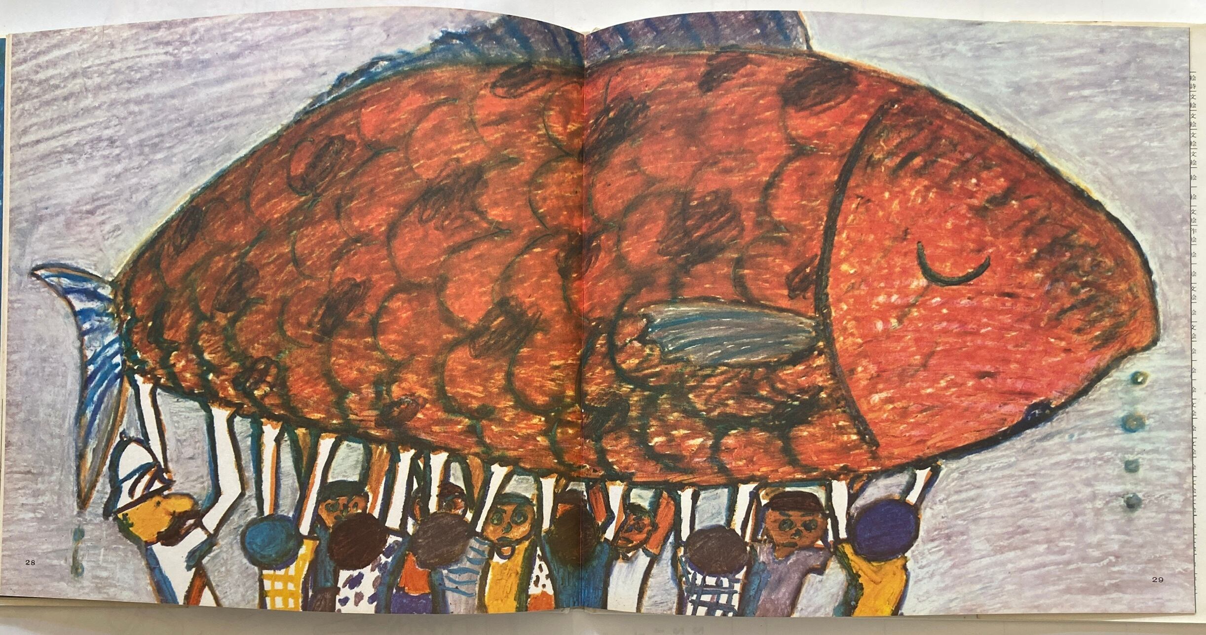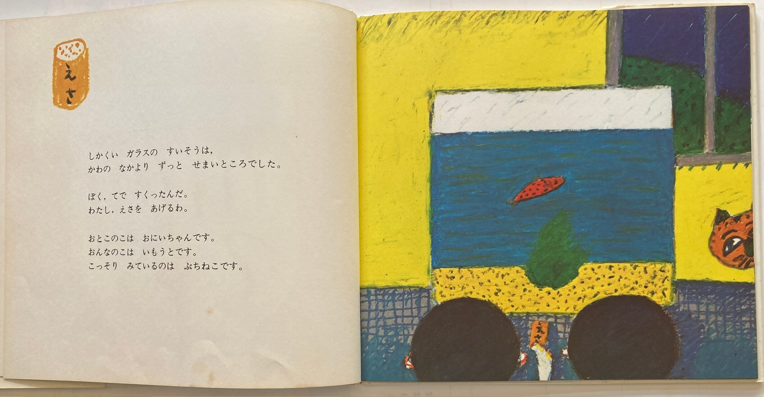 クレヨンで描いた絵です。名作「ぼくのクレヨン」もそうですね。長新太の絵は、ほんとうに「おみごと」と言いたくなります。経年のヨレ感あります。 初版1973年の1982年4刷 講談社