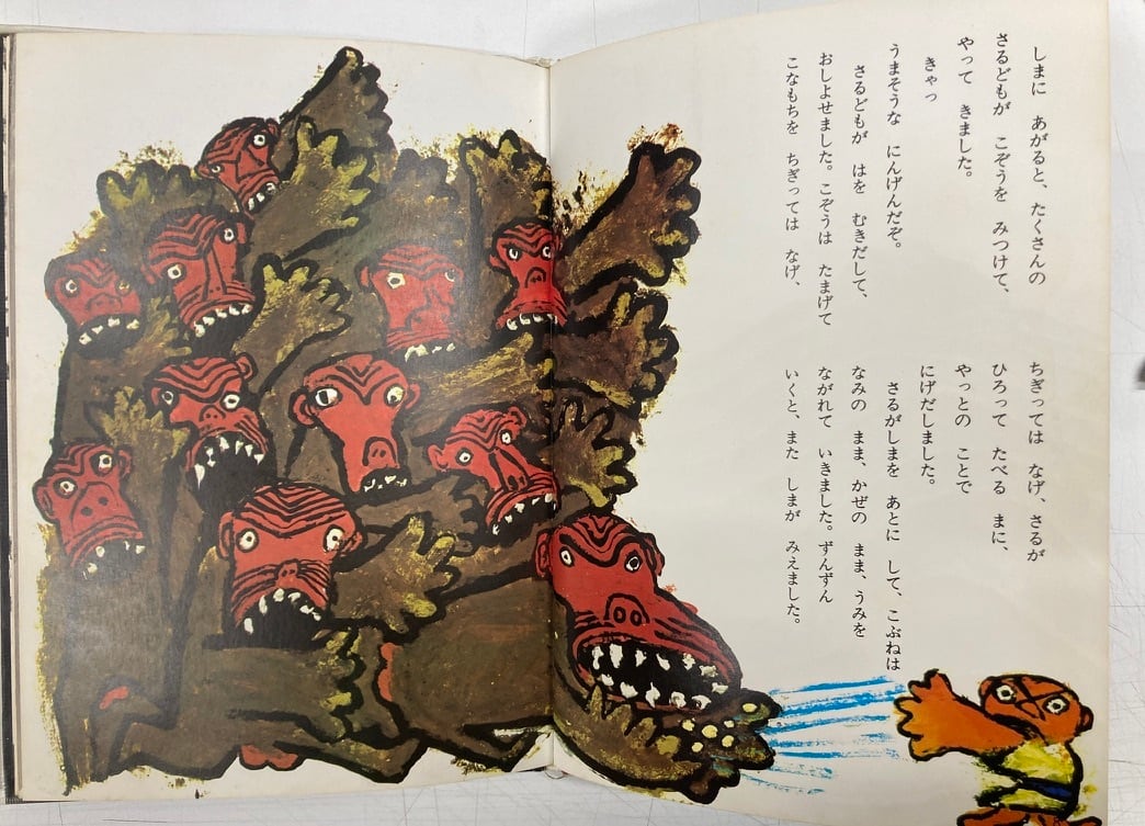 田島征三のこん絵本があったのですね。それに文が神沢利子。 にほんのみんわ10 1969年 初版 ひかりのくに昭和出版