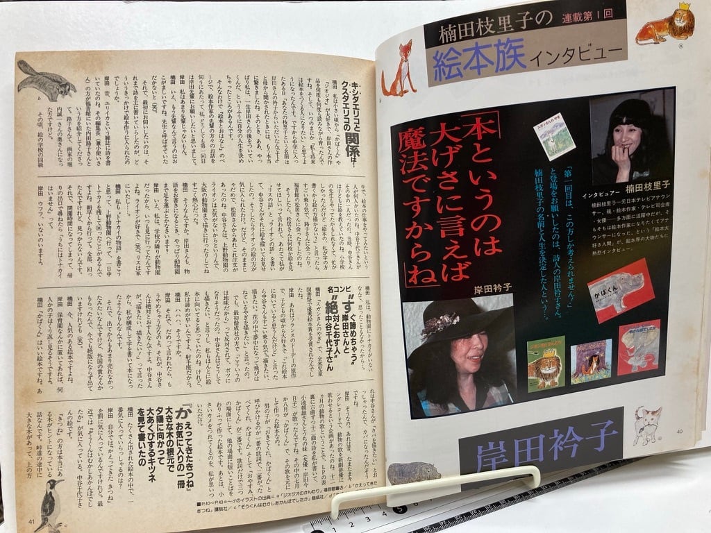 「絵本とおはなし」絵本を子どものだけでなく大人も楽しめるメディアととらえた雑誌つまり作家に焦点をあてたわけです。のちの「MOE」に。私の画法で、せなけいこ、飯野和好が! 五味太郎、田島征三など。なんといてもいいのは、巻末に挟み込みで厚紙の付録が、飯野和好さんの「めんこグリム」と「めんこマザーグース』。表紙は東逸子が担当しました。表紙少し折れ跡あります。1982年1月号 偕成社