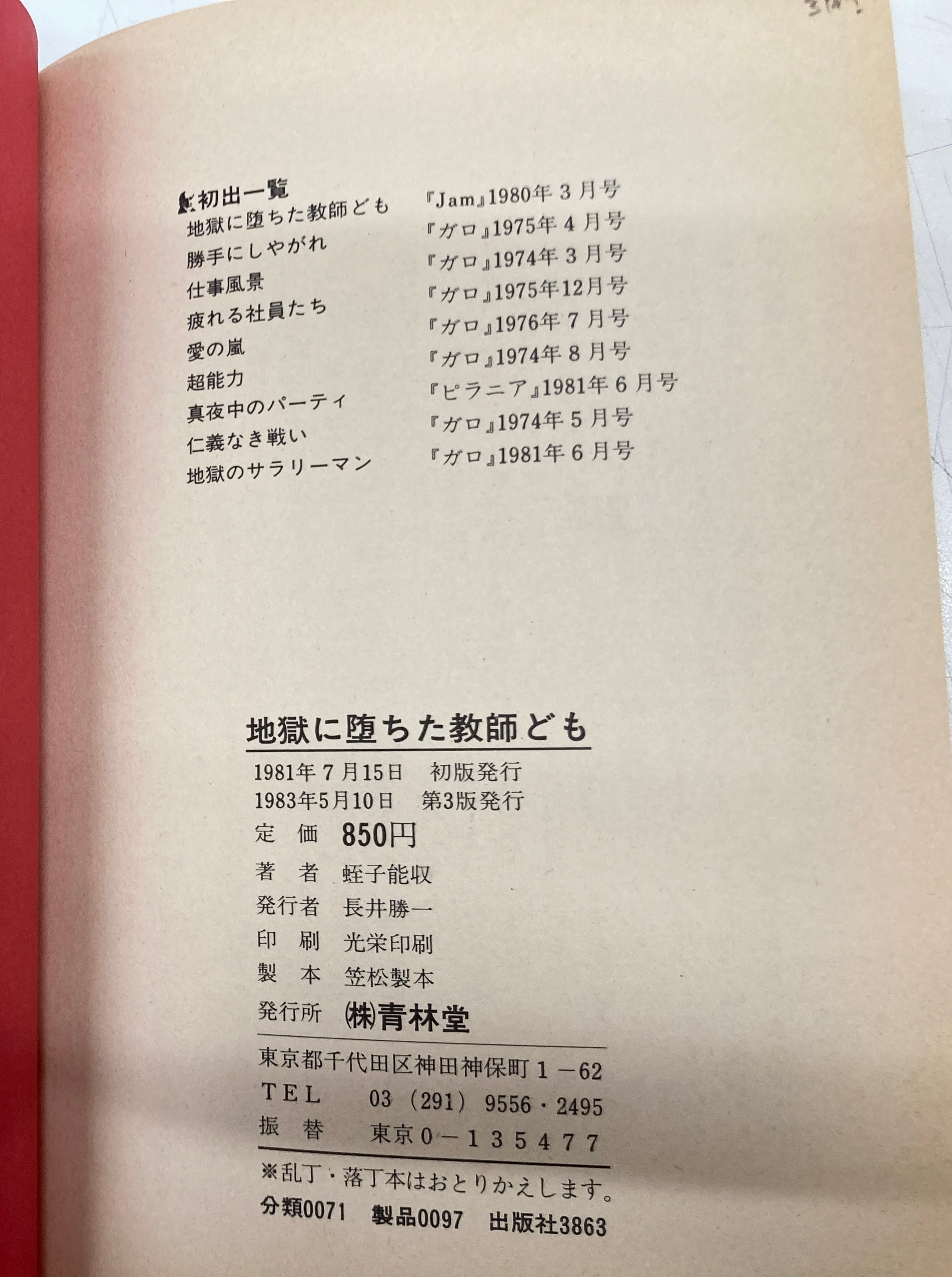 蛭子能収 地獄に堕ちた教師ども 1981年初版の1983年3刷 青林堂