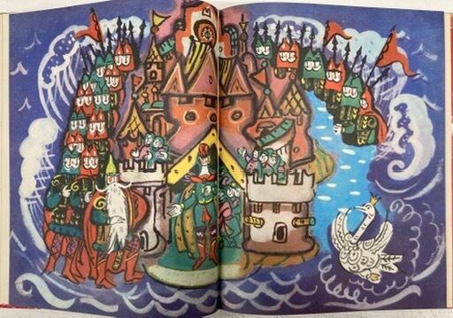 この本は、堀内誠一の「絵本の世界 110人のイラストレーター」に紹介されており、その詳細を参考にしました。ロシア語は全くわからない。堀内誠一が「陽気なロシアケーキ」と称しているように、この色感!筆の走り!まさしくマブリナでしかできない表現できない世界観です。1977年