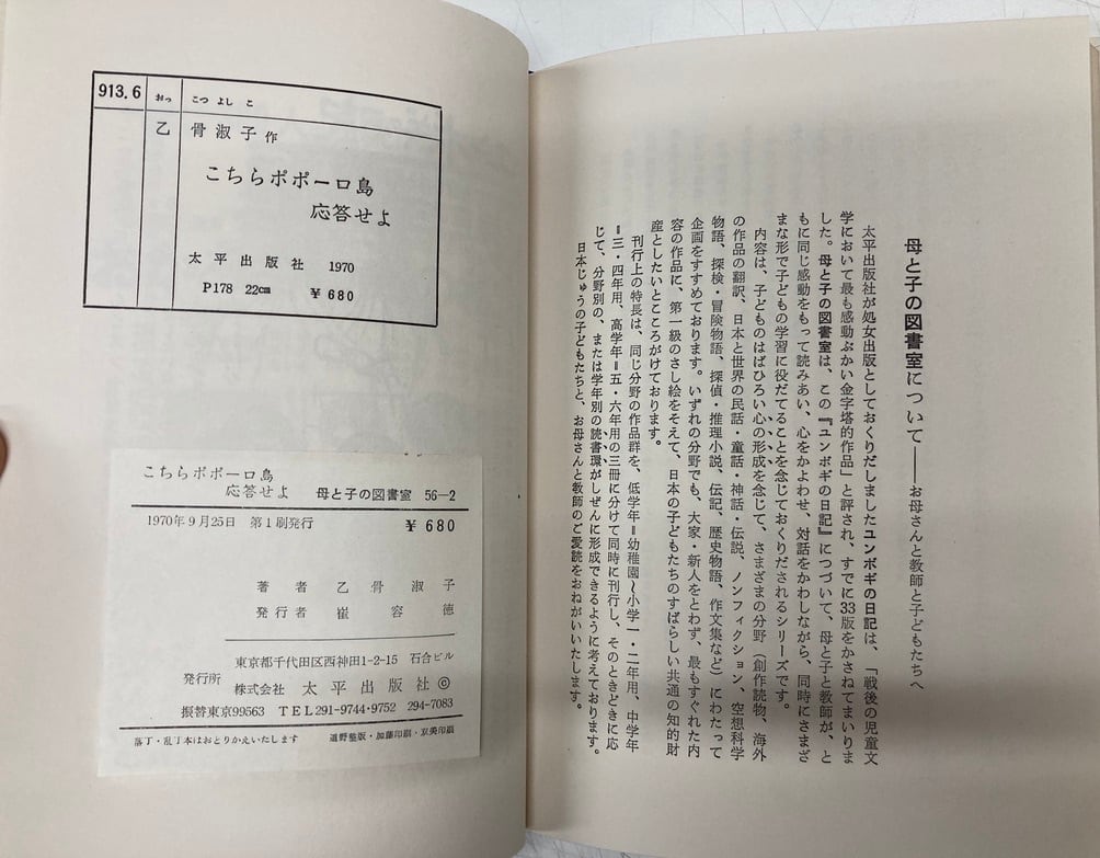 乙骨淑子 村上豊 こちらポポーロ島 応答せよ 母と子の図書室 1970年 初版 函 太平出版社