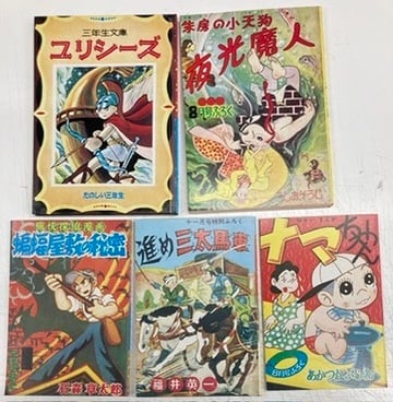 藤子不二雄「ユリシーズ」、手塚治虫「38度線上の怪物」、石森章太郎「蝙蝠屋敷の秘密」、赤塚不二夫「ナマちゃん」、福井英一「進め三太馬車」、馬場のぼる「宮本武蔵」、うしおそうじ、杉浦茂、寺田ヒロオ、永島慎二 1985年 国書刊行会