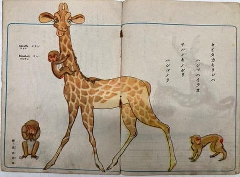 戦後紙のないなかつくられたペラペラの絵本のなかの一冊 表紙含めて16ページ 中綴じ 一見開きだけ關口隆嗣の絵でほかは武井武雄の絵です 経年のヨレ感あります 版元の愛育社は現在も健在です 昭和22年(1947) 愛育社