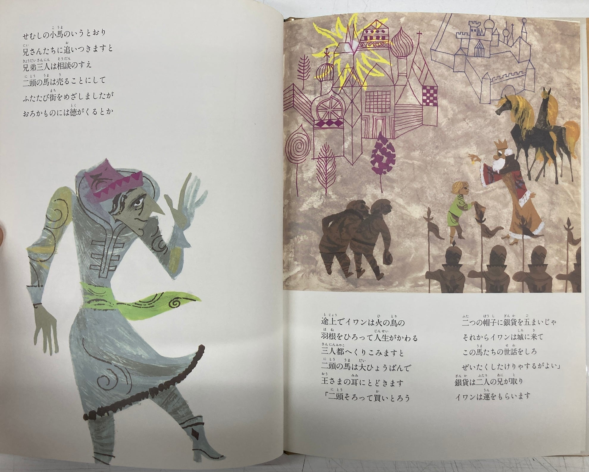 20代の宇野亜喜良が、ソビエトのアニメーション「せむしの小馬」に影響され描いた原画をもとに作られた絵本、宇野亜喜良も言っているがアメリカの絵本作家アリス・アンド・マーチン・プロベンセンの影響がある 1991年 初版 文化出版局