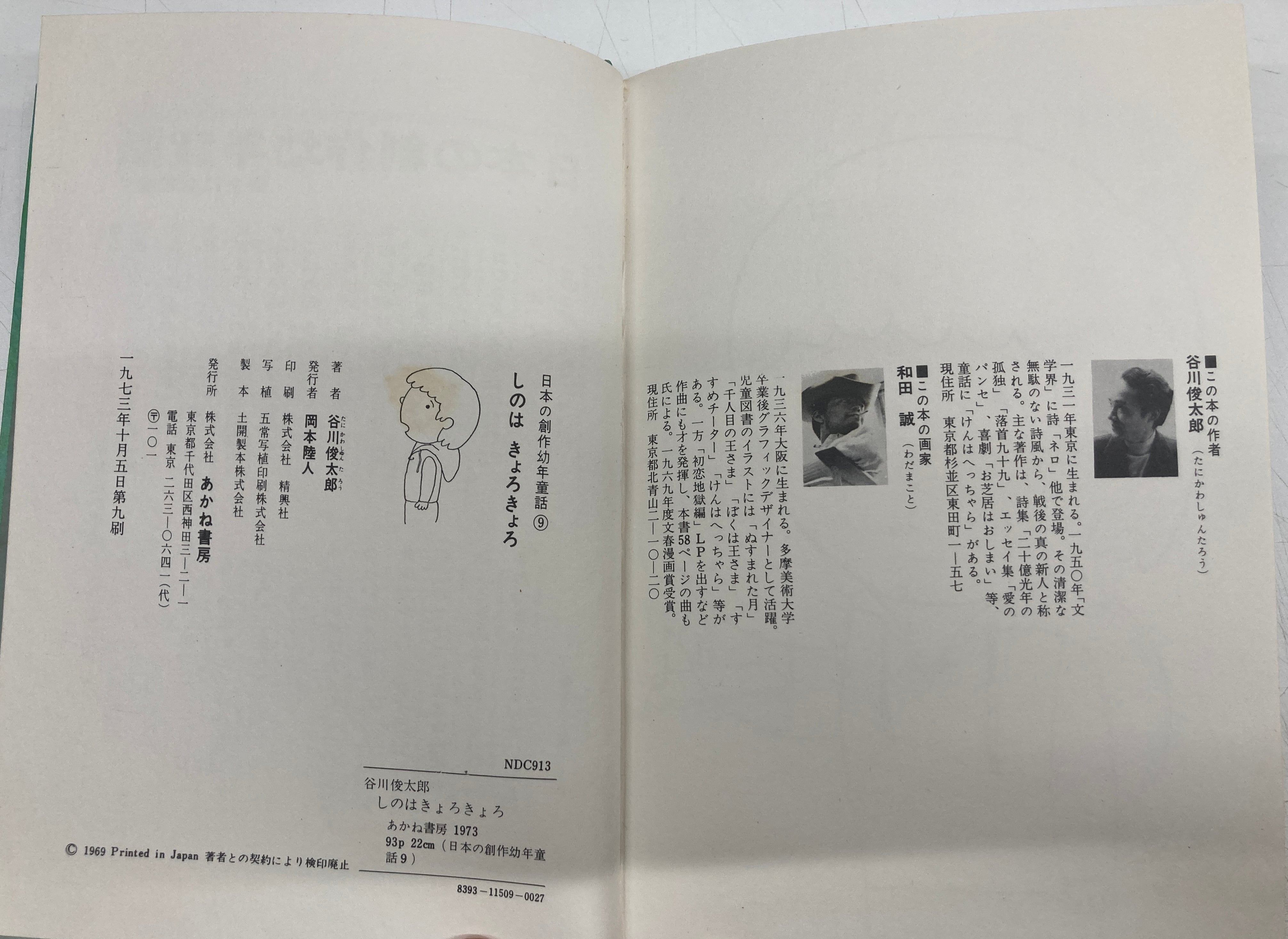 和田誠 しのはきょろきょろ 谷川俊太郎 日本の創作幼年童話9 1969年初版の1973年9刷 函 帯 あかね書房