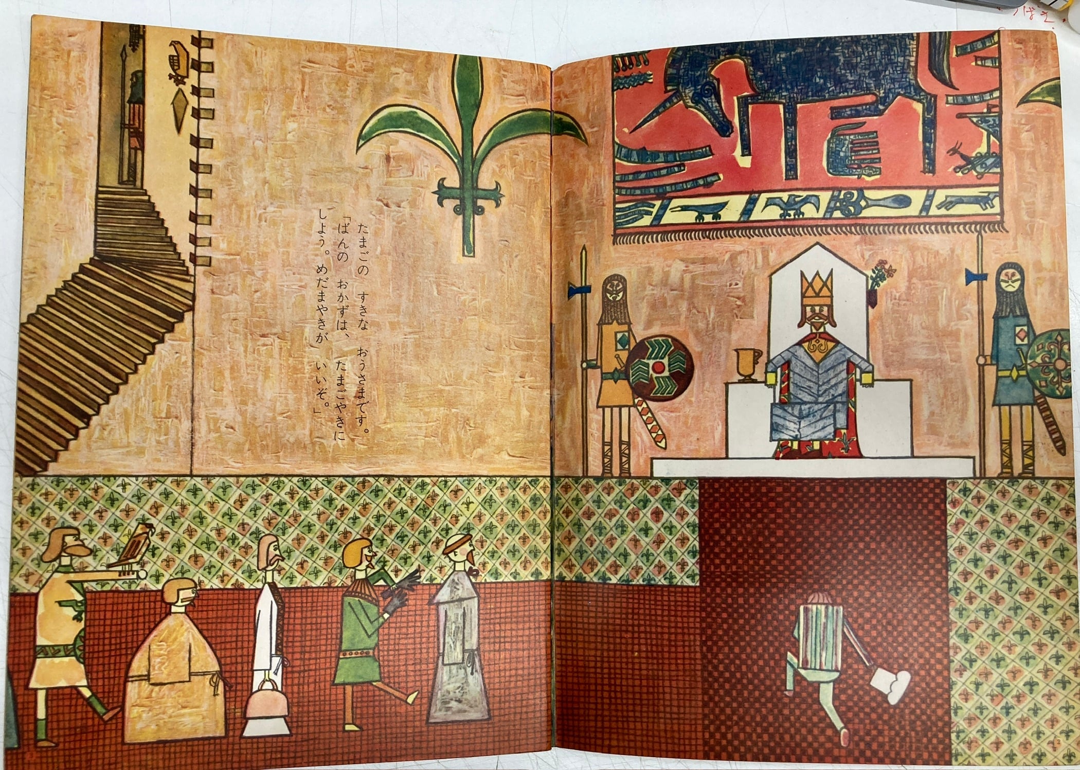もう60年まえの絵本ですね 漫画家長新太が堀内誠一のすすめで絵本をかきます それが「がんばれさるのさらんくん」その翌年この「おしゃべりなたまごやき」がでて、この絵本で第5回文藝春秋漫画賞受賞を取ります 極初期の長新太というべきでしょうか 閉じこみの冊子がないのが残念 こどものとも「母の友」絵本35 1959年 福音館書店
