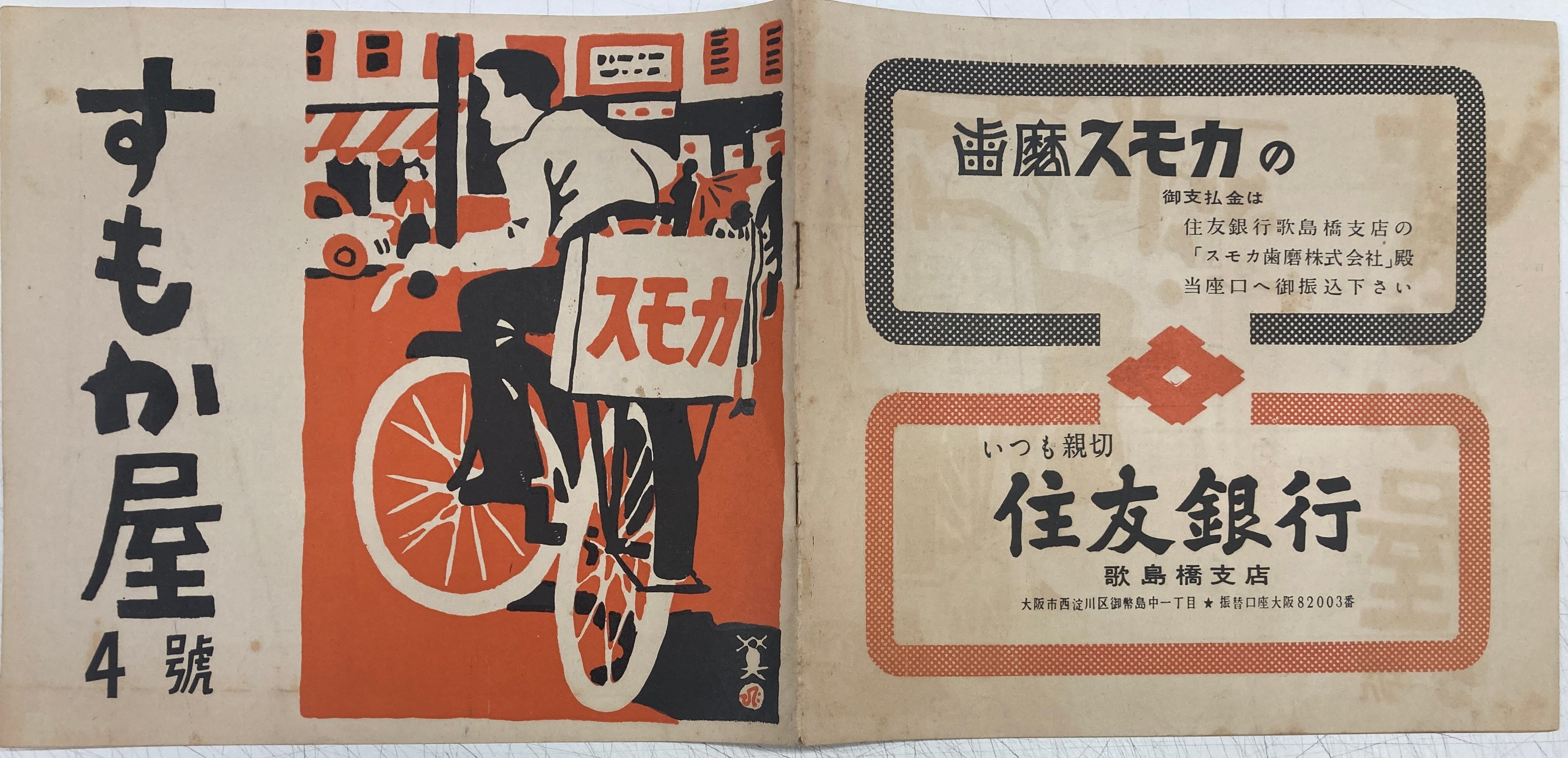 スモカの広告は、片岡敏郎が手がけた戦前の広告が有名ですね スモカ歯磨きは、現在も健在ですね 表紙が2色刷りでかっこいいと思っていたら、どこにも川西英という表記はないが、サインでわかります ペラペラ(本文12ページ)の業界誌? 昭和28年(1953) スモカ歯磨