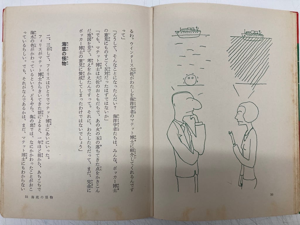 1966年初版の1969年の6刷 長新太の挿絵が、ミドリのインクで刷られています <エスエフ>世界の名作3 1969年6刷 函 岩崎書店