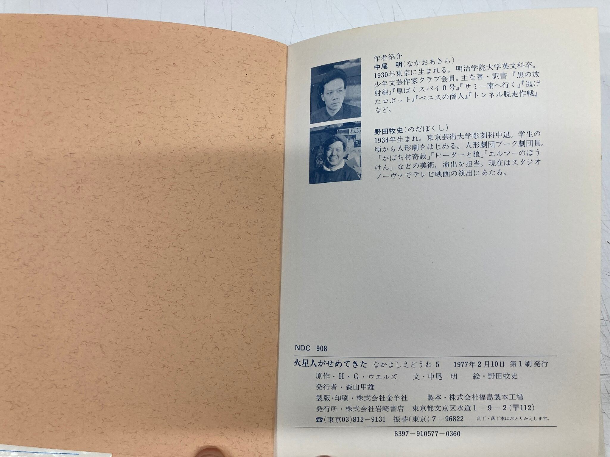 野田牧史 火星人がせめてきた ウエルズ・作 中尾 明・文 なかよしえどうわ5 1977年 初版 岩崎書店
