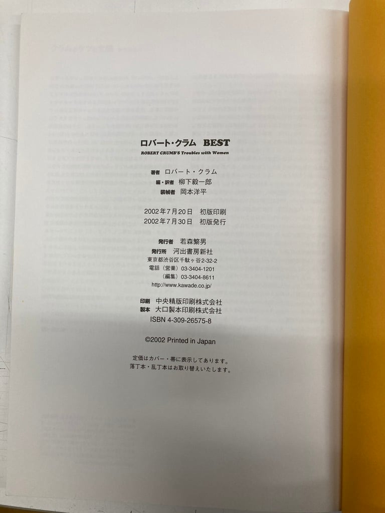 ロバート・クラム BEST 編・訳者 柳下毅一郎 2002年 初版 河出書房新社